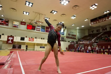 Temple scored a 47.475 on the floor event. Temple's last three performers all scored at least a 9.7. Stephanie Verry and Lauren Capone both earned a 9.7. Two-time ECAC floor champion Jasmine Johnson resumed her excellence from last year on floor with a 9.75, the best score on any event for the Owls.