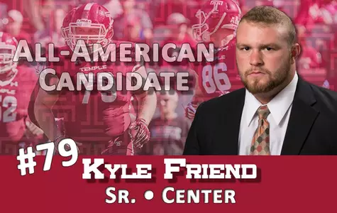 As the center for the Temple Owls, Kyle Friend has become the keystone of one of college football's best offensive lines. The Owls have rushed for 153.8 yards per game, up from 107.8 a year ago. The team has 20 rushing touchdowns so far, eight more than their total last season. Jahad Thomas has stepped into the lead back role and has four 100-yard games this season. The unit's sack average is down and their improved blocking has given quarterback P.J. Walker better windows to throw. Walker's interceptions are down significantly. Friend has been the stalwart on the offensive line, starting 41 straight games, the longest streak on the team. Friend suffered an injury vs. Notre Dame and has missed the past two games.