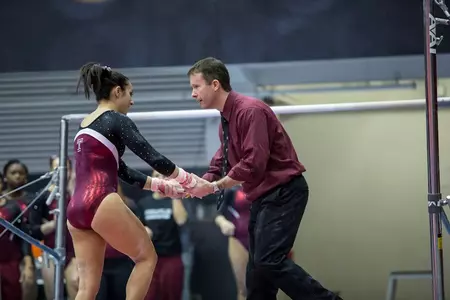 The Owls finished the meet on floor where they got a team score of 47.95. Capone and Stephanie Verry had the top score for squads on the event with a 9.8. Alexandra Forcucci's routine earned her a 9.725. Lapent also garnered a score of 9.625.
