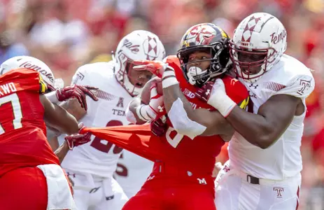 PHILADELPHIA- Following a 35-14 win over Big 10 opponent Maryland, DT Michael Dogbe was honored by the AAC with Defensive Player of the Week. Dogbe had seven tackles, 3.5 TFLs, 2.5 sacks, and two forced fumbles. Those are all career highs for the graduate. The defense allowed no points to be scored and only allowed 195 yards.Â
