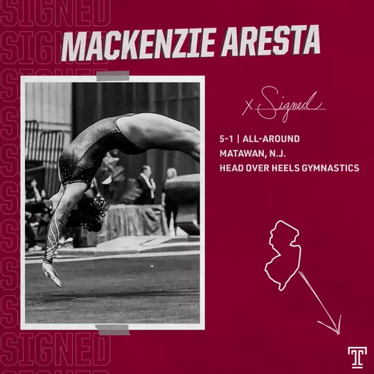 PHILADELPHIA— Temple women's gymnastics will welcome three more talented gymnasts to its incoming class with the addition of Mackenzie Aresta, Kayla Deveau and Mia Rose Thackston. Aresta, Deveau and Thackston are set to join the rest of Temple's newcomers, Brooke Donabedian, Lanie Hyman, Renee Schugman and Cyrena Whalen, on North Broad in the fall.