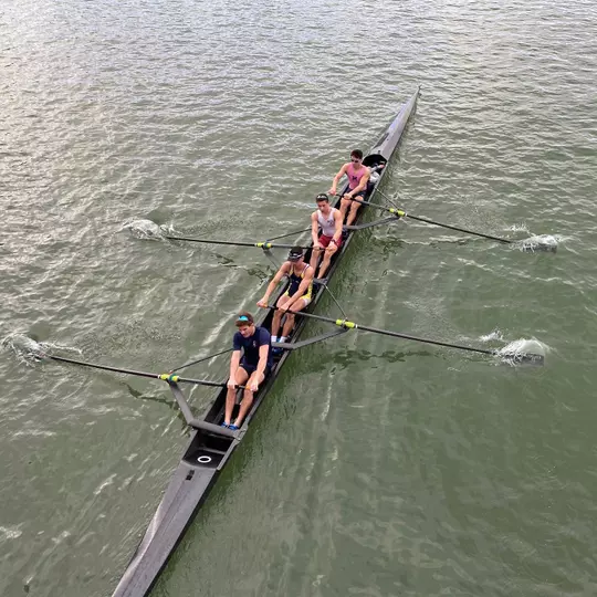 As we lined seven eights across the river for an unofficial scrimmage with our city rival, Drexel, and took off for a brief, 600-meter race, the feeling was electric. Blood surged through my veins, carrying with it massive amounts of oxygen and increasing amounts of lactic acid with every stroke. My lungs expanded and contracted like the billows in the engine room of a freight train, and the glorious cries of my brethren oarsmen erupted across the tumultuous water and the ashen skies. Stroke after stroke, we did battle. Our oarlocks clacked against the collars of our oars, and the wheels beneath our seats whined as we flew back and forth in a bittersweet dance of pain and precision.