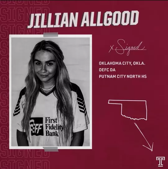 Jillian Allgood, a native of Oklahoma City, Okla., attends Putnam City North High School and plays club for Oklahoma Energy FC DA. In her high school career Allgood was a captain and varsity letter-winner for Putnam City North. As a freshman, she was named to the Big Ten All Star Second Team and earned First Team honors as a sophomore. Allgood is a defender on her DA team and actively involved in numerous organizations and activities. She is a four-year letter-winner in cross country, a member of the National Honor Society, student council French club, Link Crew and is the District 10 Vice President. Allgood is also an honor roll student and plans on studying sport management at Temple.
