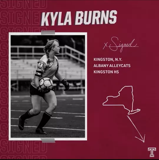 Kyla Burns will come to North Broad from Ruby, N.Y., where she attends Kingston High School and plays club for the Albany Alleycats. Burns was four-year starter in goal for Kingston and her efforts earned a varsity letter each year. In her junior and senior campaigns, she was named to the All-State Second Team, Section 9 All-Section First Team and the Section 9 Class AA All-Star Team. In her career with the Alleycats, Burns' team was ENY State Cup and EDP Cup champions. She also was on the international roster for the ODP Region 1 team. Burns is a member of the National Honor Society, is an honor roll student and is an All-State pianist and saxophonist. She plans on studying speech, language and hearing science at Temple.