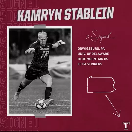 Kamryn Stablein comes to Philadelphia as a junior transfer from the University of Delaware. During her freshman and sophomore seasons as a goalkeeper for Blue Hens, she recorded a 1.26 GAA and 0.77 save percentage. She notched 10 shutouts and started 32 of 33 games in her two seasons. Stablein was named to the All-CAA Second Team as a sophomore. Before Delaware, she played club for the FC Pennsylvania Strikers, winning the state title three times. Stablein plans on studying psychology at Temple.
