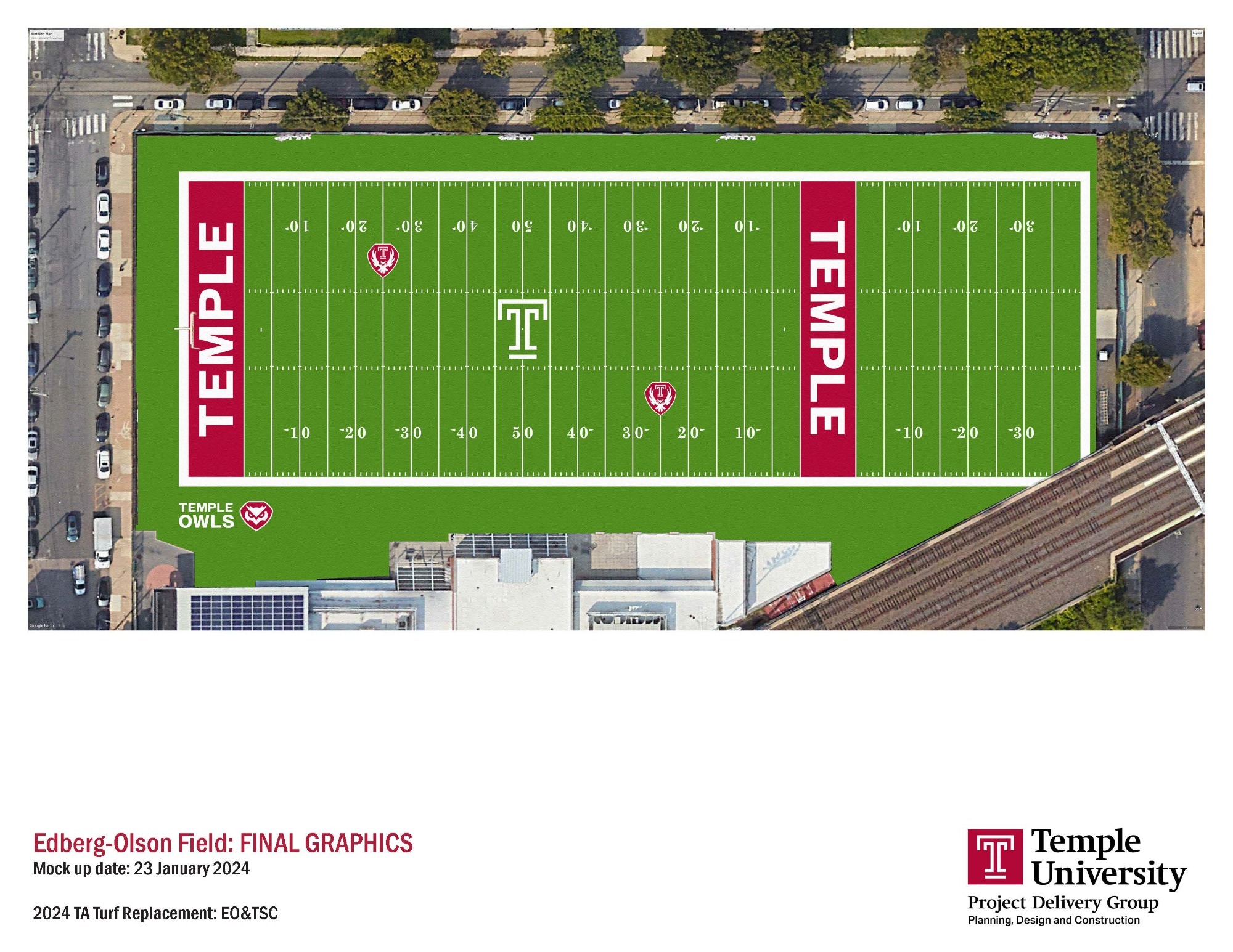 PHILADELPHIA – Temple Athletics Facilities will undergo a "turf lift" over the next few months as the fields at the Edberg Olson Football Complex and the Temple Sports Complex will have new turf fields installed by FieldTurf, a world leader in artificial turf with over 25,000 installations worldwide.