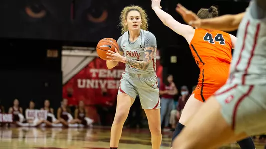 2022-23: Played in all 29 games for Temple, starting 20 of the final 21…Averaged 5.0 points and 4.0 rebounds per contest, in conference averaged 6.4 ppg and 5.3 rpg…Shot a team leading .466 from the field…Set her first career-high of the season with six rebounds in win at Bucknell (11/27)…Set a career-high with 11 points vs ECU (1/11) to go with five rebounds…Grabbed a career-high eight rebounds at Memphis (1/21)…Set career-high 17 points in win over Wichita State (2/1)…Recorded first career double-double with 10 points and 13 boards at Houston (2/4)…Was awarded Big 5 honor roll for her efforts in the two games…Nearly recorded her second career double-double with nine points and ten rebounds vs Houston (2/18)…Put up 14 at Wichita State (2/25).