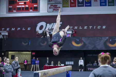2016: 2016 co-captain… Returned from injury to compete in every meet including eight as an all-around gymnast… Earned a career-high 9.85 on bars at the Ken Anderson Memorial Invitational (02/06)… Posted season-highs of 9.6 on vault, 9.75 on beam, 9.675 on floor, and 38.35 in the all-around… Collected three individual event titles, all at home… Placed first on bars and beam at the Ken Anderson Memorial Invitational (02/06) and first all-around at the Owls’ home tri-meet on March 05… Named ECAC Coaches’ Choice Gymnast of the Week for the week of Feb. 8…. The Daily News Athlete of the Week for the week of Feb. 8.